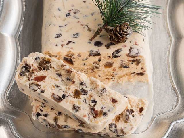 Every half hour, stir up until the ice-cream is softly set and fruit and nuts evenly distributed.