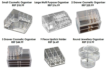 The Compactor Home Cosmetic and Jewellery Organisers are available now at Harris Scarfe stores and selected Howards Storage World.