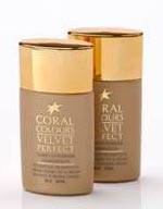 Coral Colours Velvet Perfect foundation. This innovative, creamy liquid foundation embraces your skin, transforming to the softest, freshest, velvety powder finish for a perfectly flawless even complexion every time.