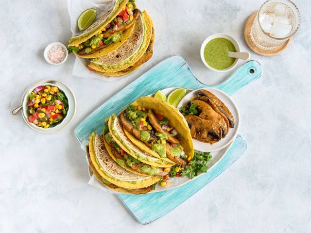 To serve, spoon a little of the salsa into the base of the hard taco, top with Mexican mushrooms and drizzle with baja sauce. Eat immediately.
